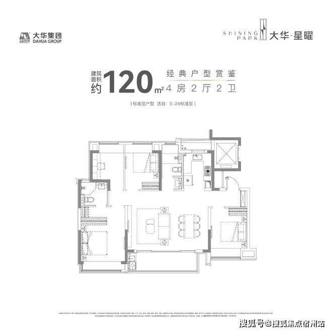 建面约120㎡的产品,市面上大多都是3房,但大华星曜做了4房的设计,实用性非常出色。