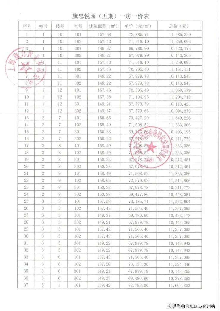 崇明某触发积分项目部分一房一价表