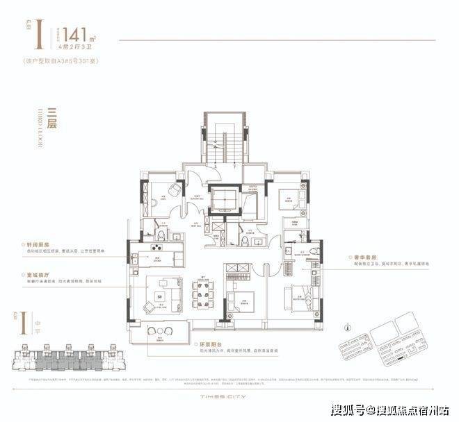 华润置地时代之城高层产品将百平上下的改善户型做出了轻奢级的居住体验,把约133㎡的改善四房做出了豪宅的尺度感。