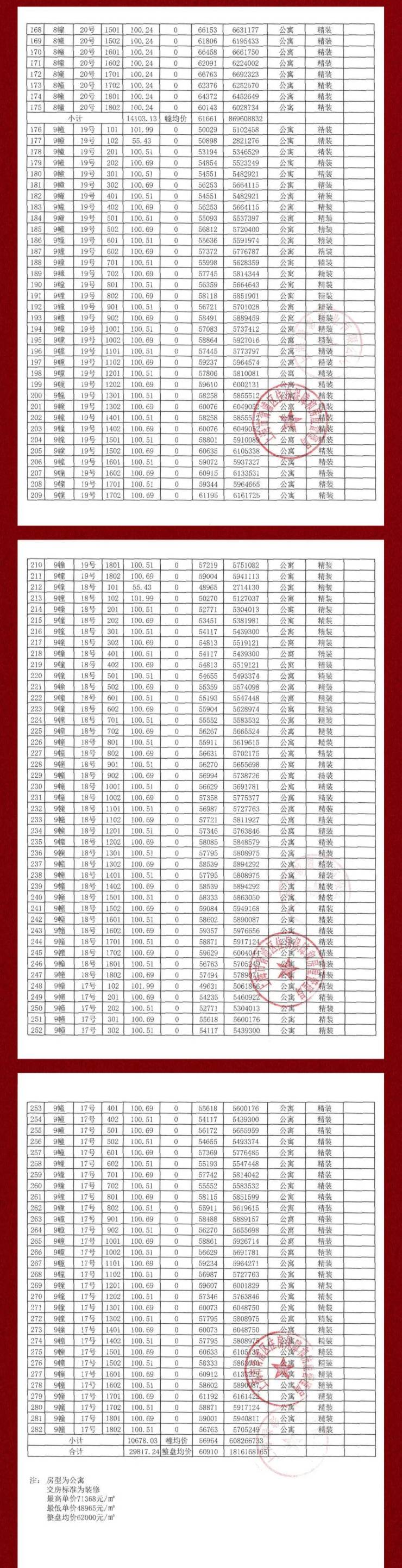 最新一房一价表: