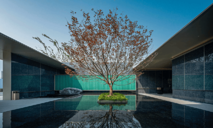 在售楼处入口水院正中央,一颗整株大棵的近百年红枫经过绿城景观设计团队27天12700公里,从1200+棵红枫中精心挑选,伞状饱满,寓意鸿运当头! 要知道无论是蓝珍珠石材、玉石玻璃还是百年红枫未来都会成为小区的交付标准,如此高阶的审美,谁能复制?!