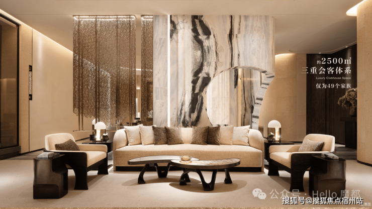 社区仅49户,但却拥有三重,共约2500㎡的会所及泛会所配套空间,户均会所面积高达50㎡,三重会所三重功能属性,私密性层层递进。