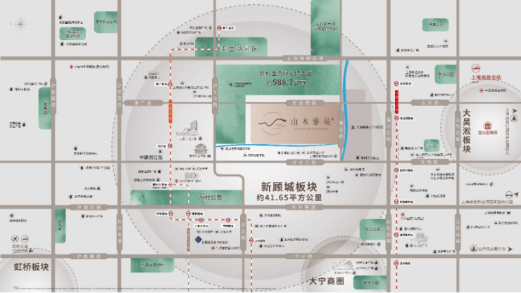 2024,中建东孚与上海同频共振,远见城市发展,于北上海都芯再度落笔,敬献境系迭代作品——中建山水雅境。上海2035规划中,新顾城板块明确为上海主城新兴的重点板块;在全上海科创发展价值链上,大宁-市北高新区与桃浦智创城-南大智慧城两大产业链形成协同共进,一路向北拓展,与宝山主城于新顾城磅礴交汇,擘画出北上海发展潜力更大、高智人群集合、板块更具年轻活力的宜居生活芯;在宝山主城发展链上,新顾城位于沪太路城镇发展轴和宝杨路-宝安公路功能发展轴的轴心,东西向链接嘉定远香湖中央活动区、吴淞创新城,南北向联动南大智慧城,成为北上海产业升级转型的产城高地。项目凭依新顾城千亿规划,紧邻顾村生态绿心特定区,兼得繁华与生态双重卓越资源,产城融合驱动板块升级的当下,与北上海共享潜力未来。