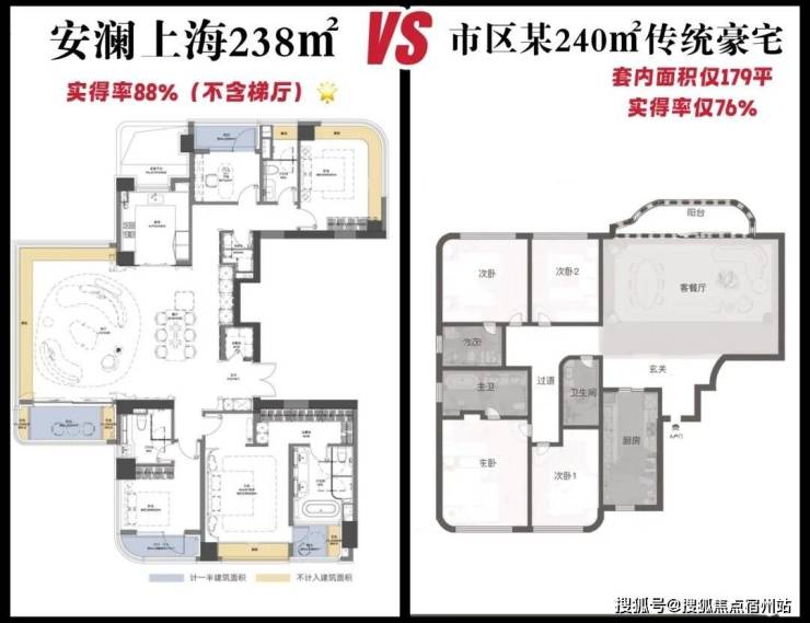 传统豪宅实得率只有75-80%。