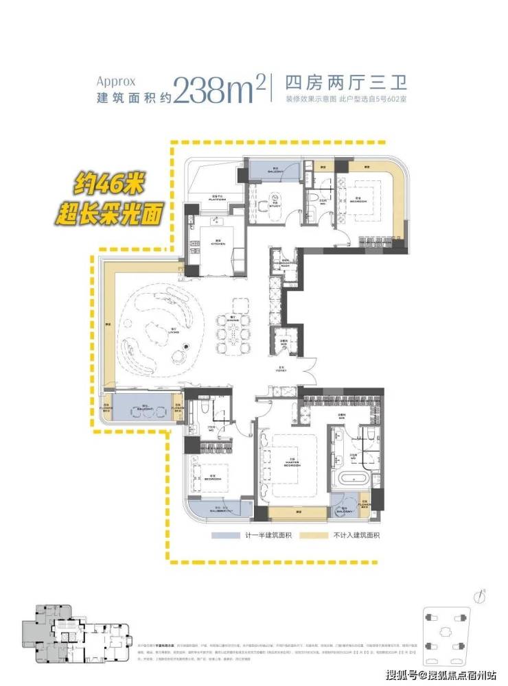 得益于新规,安澜上海238㎡套内 实得率约88%(不含梯厅) ,算上梯厅约6.8㎡,整体附加使用面积可达约31㎡。