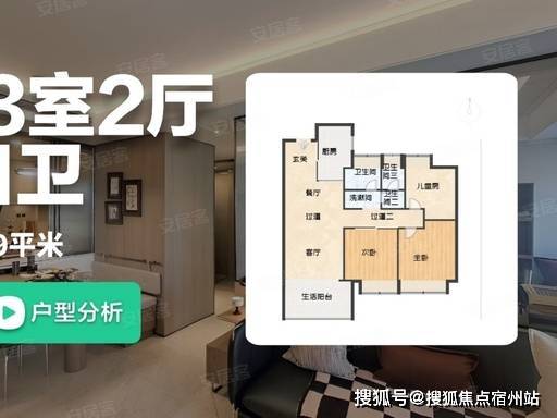 建面约 89㎡三房两厅一卫:刚需福音,总价可控