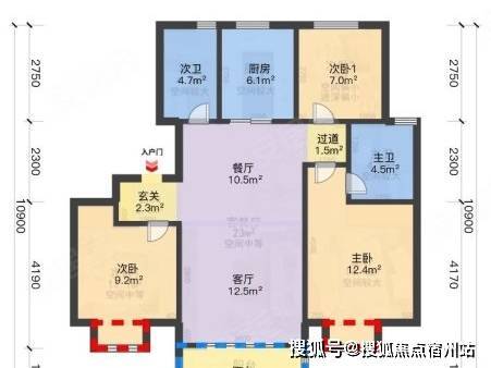 主力 96㎡三房两厅两卫 户型,为市场稀缺的 飞机户型 , 三开间朝南 ,南向面宽达 9.5 米 ,南北通透、全明格局,无任何空间浪费。