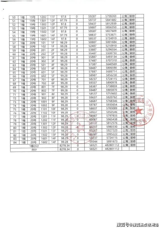 上期一房一价表