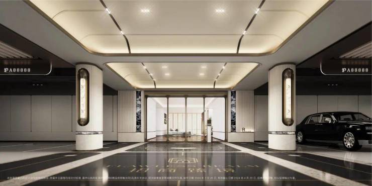 招商臻境,车行入口同样花了极大的心思进行雕琢。相比较市场普通的墙面漆,整个入库车道采用了难得一见的全铝板吊顶与通铺,配合追光式的灯带设计,车辆缓缓驶入,铝板的高级质感与柔和追光的仪式感一点点打开。