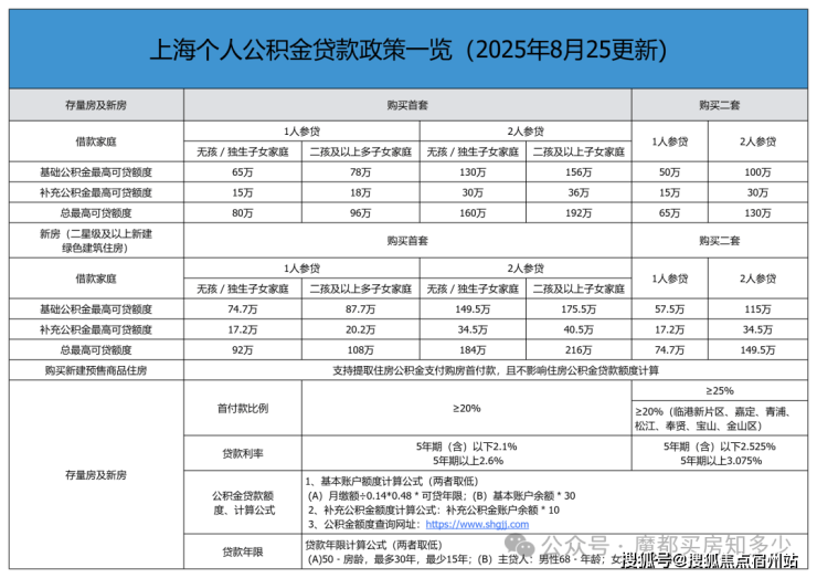 二、上海2025年8月最新购房商贷/公积金贷款政策