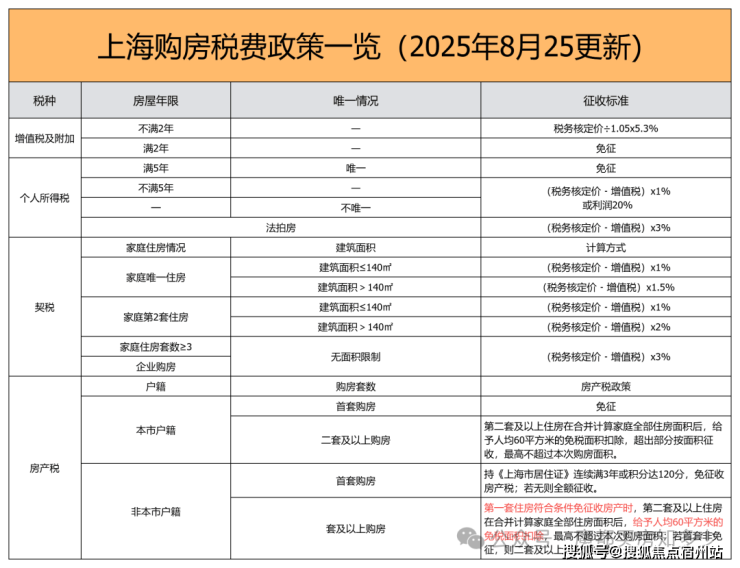 三、上海2025年8月最新购房税费政策