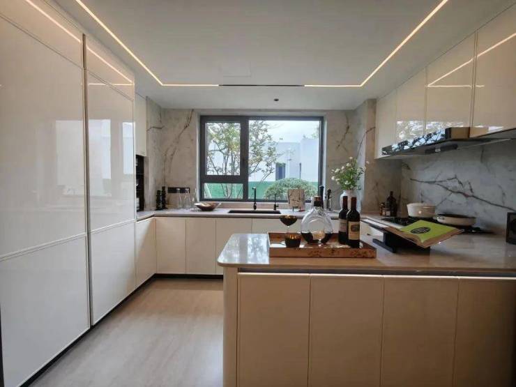 超一线装标,全部给足:厨房间博世双开门冰箱、凉霸、嘉格纳四件套、弗兰卡水槽。柜体采用的是和19.5万的绿城同款柜体——威乃达,还有弗兰卡的大单槽、旭格的门窗。卫浴采用唯宝、高仪等品牌.......投入成本非常高。