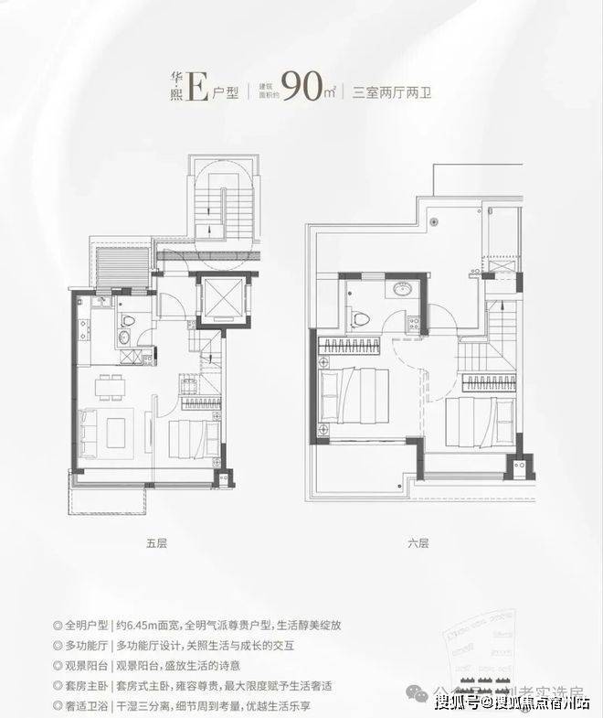 市面上90㎡左右户型两房居多,华发海上都荟建面约91㎡直接 3房一步到位,并且有2卫配置, 主卧进阶套房,功能性远超同价位竞品!