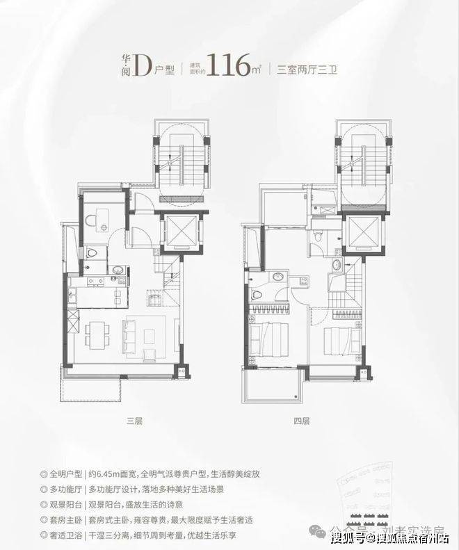 同样是3房2卫的配置,功能性与舒适度兼具。