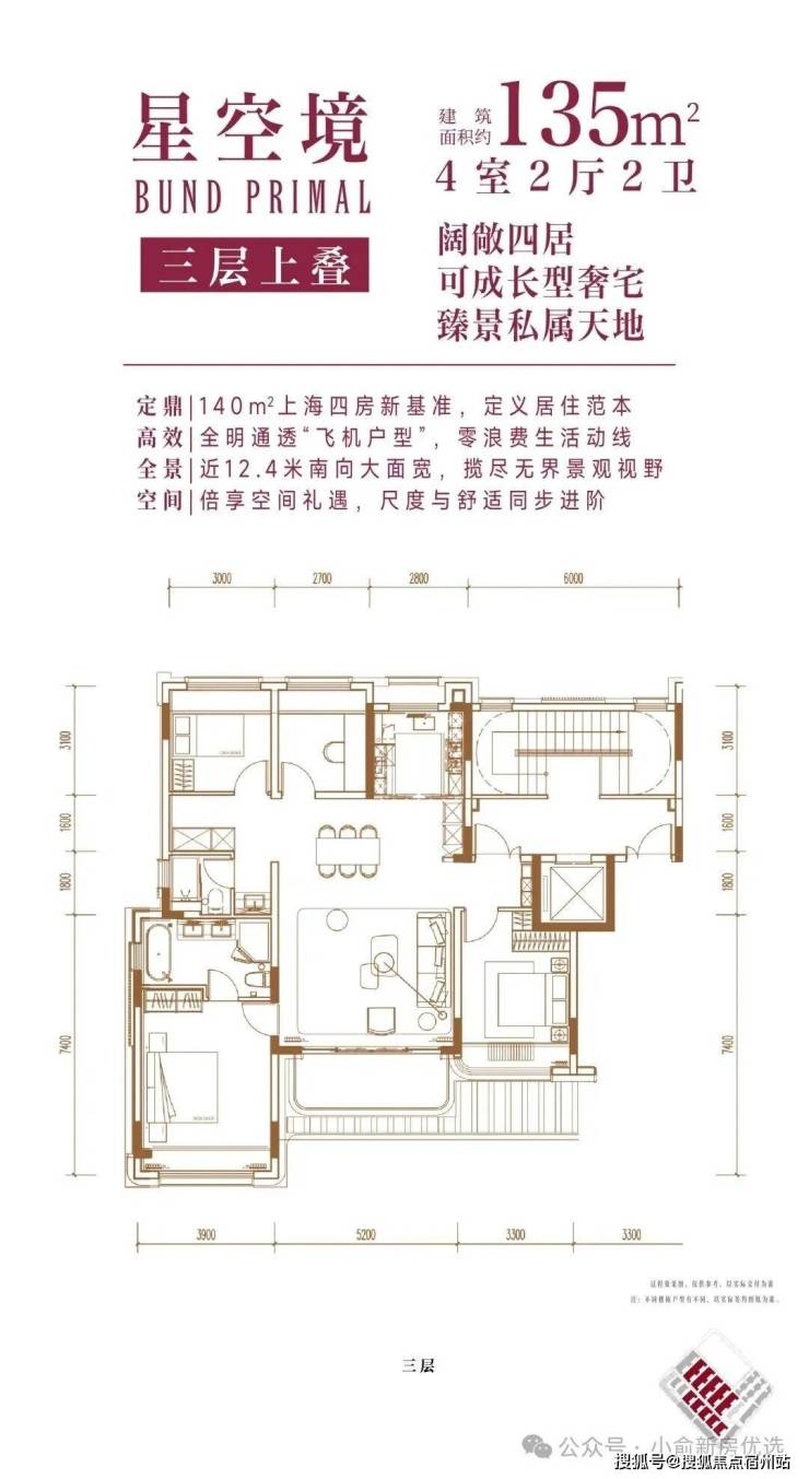 上叠(星空境):建面约135㎡,可成长型空间,适配家庭结构变化。