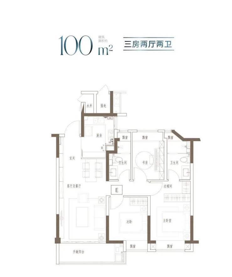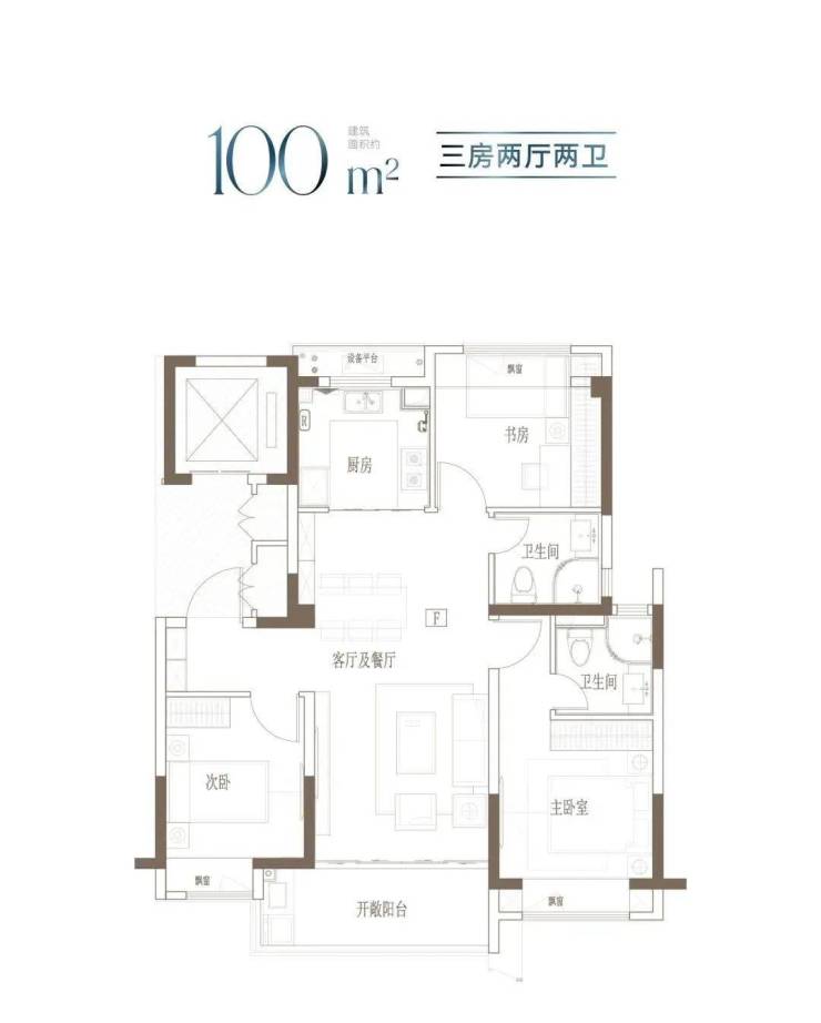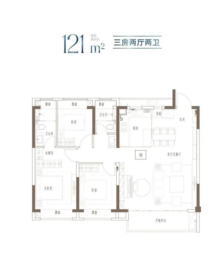 建面约100m²的阳光三房,同等面积更多功能;宽幅南向观景阳台,把居住变成风景;步入式衣帽间,给予生活更多从容。