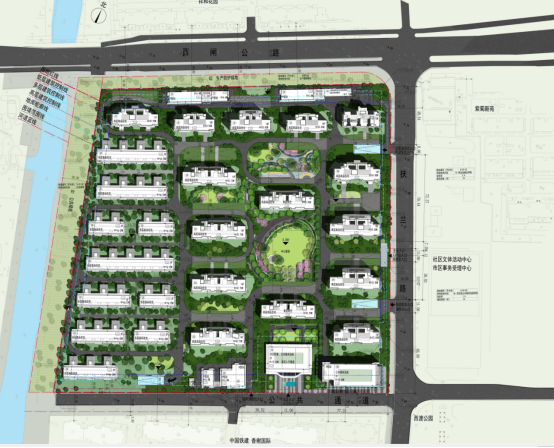 以江南人文精神为源点,打造两轴一环五进空间,江南礼序归家轴串联启迎盛礼、筑阙会友、归家华堂等5重礼制,尊崇归家;健康运动轴以24小时跑道为社区活力生活环,串联儿童乐园、长者康养、疗愈花园等10大生活场景,营造全龄全时的江南诗意生活。