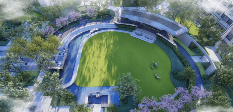 项目打造约1.8超低容积率和约35%绿化率,静享舒朗自然;约7000㎡中轴景观,涵盖约3000㎡多功能中央草坪和约200米景观长廊,日常簇拥花间草木,让建筑与绿意和谐生长。