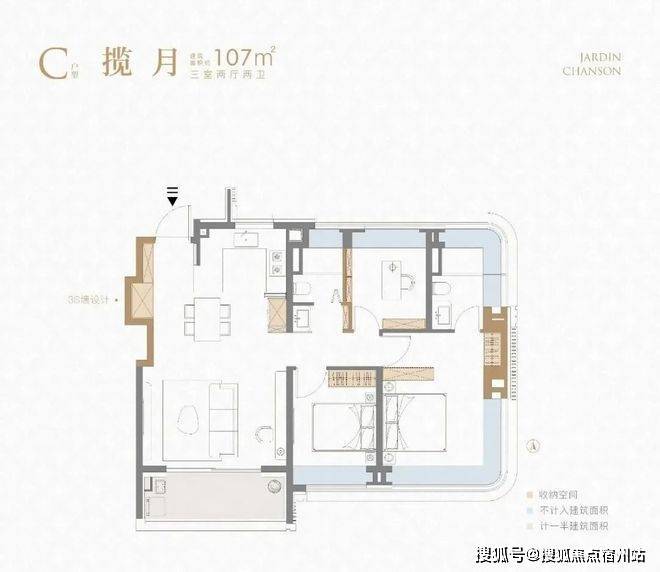 不夸张的讲,这个 建面约107㎡刷新了我对百平三房的新认知,据悉该户型或将申请专利,我认为实至名归!