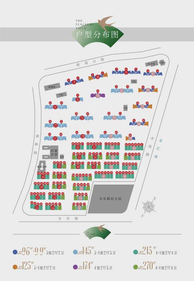 项目产品未建面约96-125m²高层住宅,建面约145-174m²花园洋房,建面约213-270m²联排别墅。