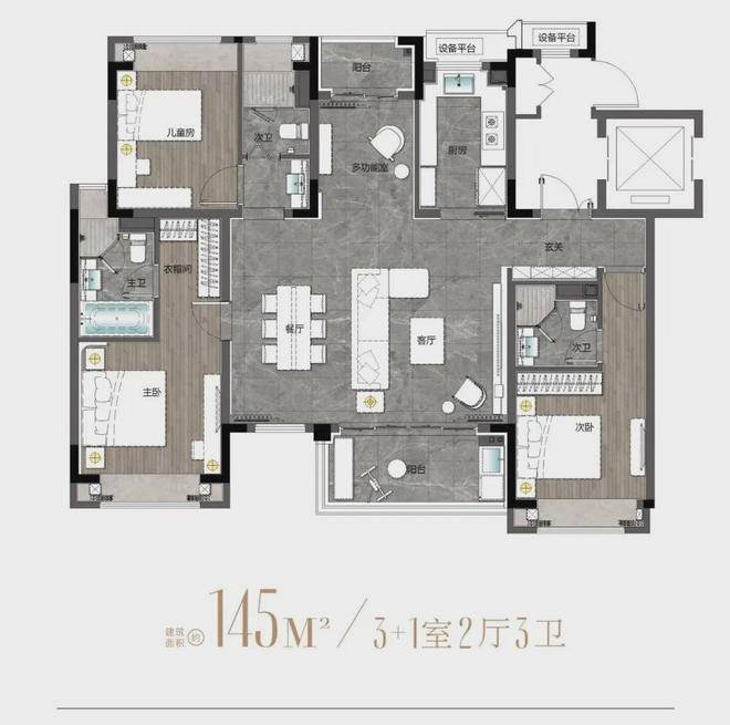 建面约145m²户型图