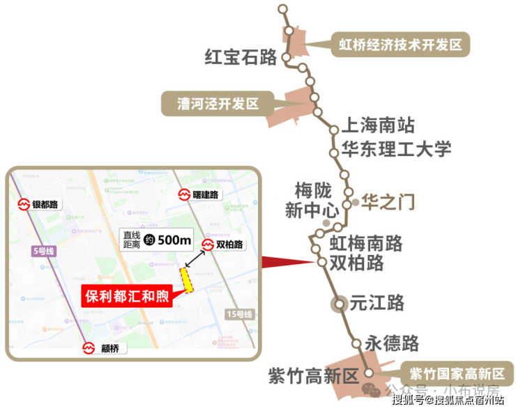 项目距离15号线双柏路站直线距离约500米,纯正的地铁盘。