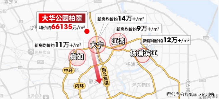 第一,南北高架+中环,大华公园柏翠串联起了上海更昂贵的置业地。
