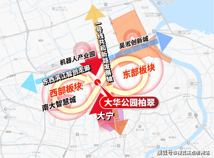 大华公园柏翠 以西 的南大智慧城、 以东 的吴淞创新城,在规划中都是 科创产业的主阵地 建设的两大核心承载区,建设速度肉眼可见。