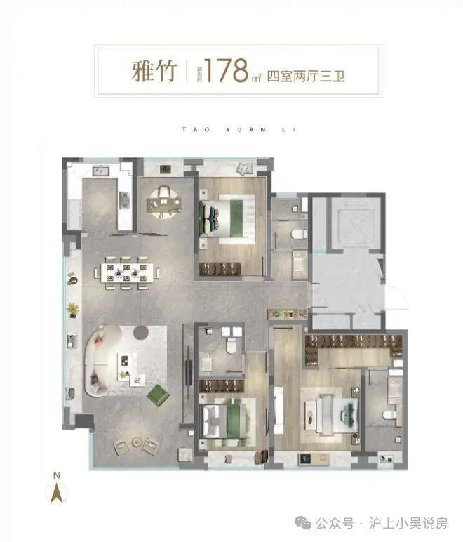 通过新桃源会客厅社区广场与独立社区会客大堂、林荫归家步道、中央景观聚场、品质入户单元昭示性景墙+专属入户铺装、首层精装大堂五大节点,赋予归家路途更多逸趣与美好。