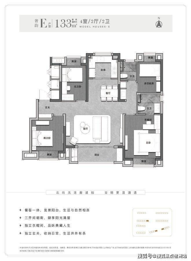 另外这个户型能更好实现 南北通透,客厅-餐厅-阳台-厨房一线连通