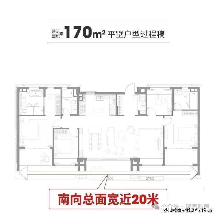 建面约170㎡户型: 直接放大招, 五面宽,南向总面宽17.2米,客厅面宽8.2米,主卧面宽5.4米 ,自带衣帽间、独立收纳空间。 三个套房设计,把豪宅该有的尊崇感安排得明明白白 。