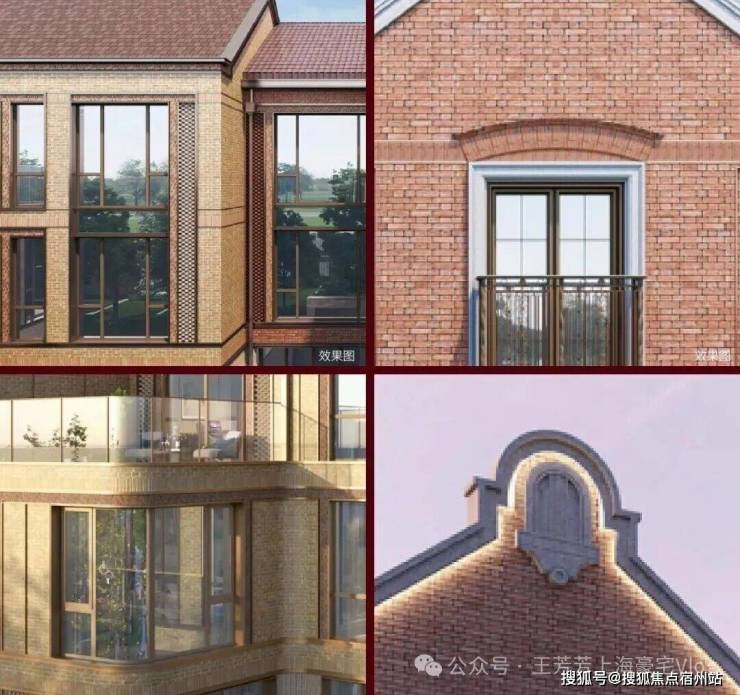 例如,在社区入户,目前已经完美呈现出来的,有强烈视觉冲击的立面 大量的红砖、红洞石及大面积的落地弧形玻璃搭配的相得益彰,整个门头既有厚重的历史感,又不失极简主义的现代美。