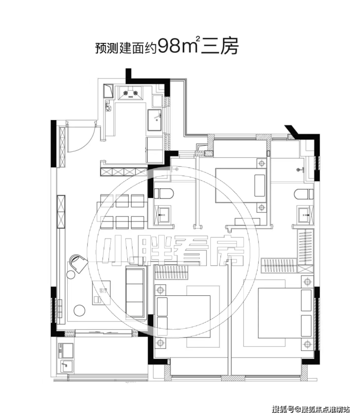 户型为预测建面约90、98㎡三房以及部分建面约149㎡滨水景观四房大平层其中主力户型预测建面约98㎡三房预计价格惊喜