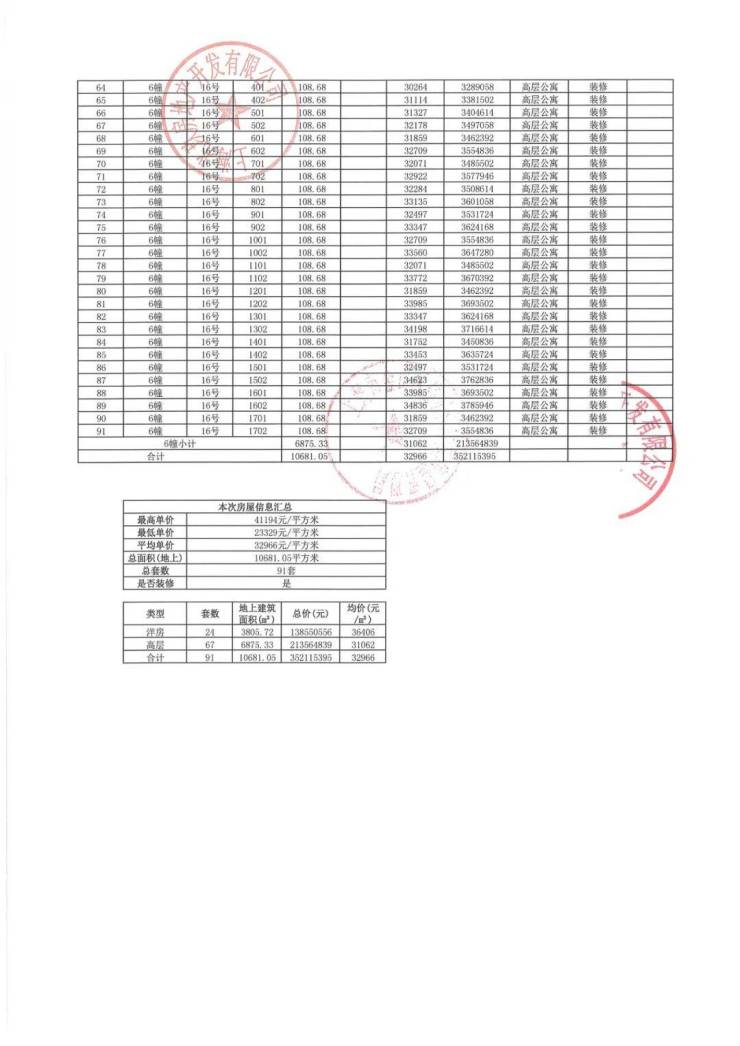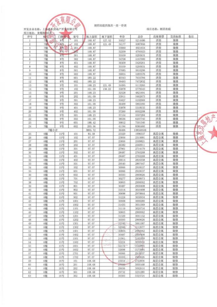 上期一房一价表: