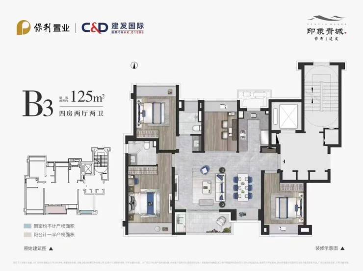 上叠建面约165㎡4房2厅3卫☑️☑️保利建发印象青城售楼处电话:400-1183-605☑️☑️