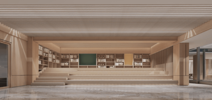 可以带着孩子沉浸在阶梯教室里,静静地读上一本好书;