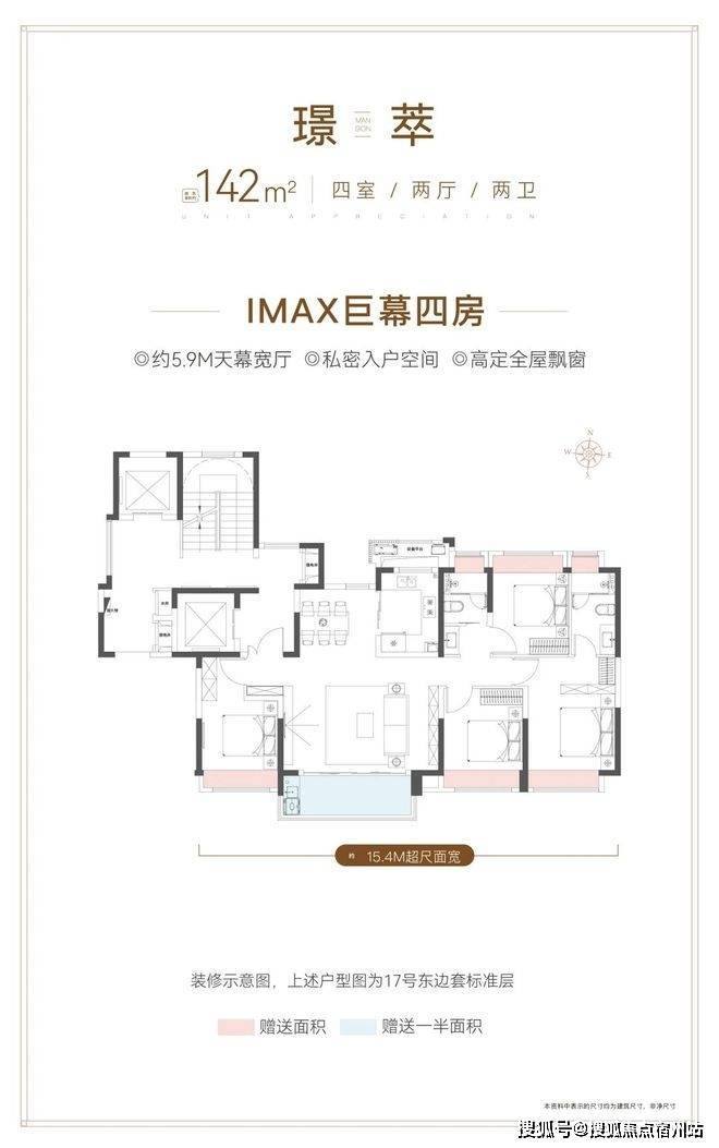 142㎡IMAX巨幕四房:约5.9M阔尺宽厅/约15.4M南向面宽,宽载巨幕光景