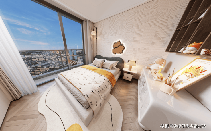 南次卧则被布置为儿童房,尺度同样宽绰。