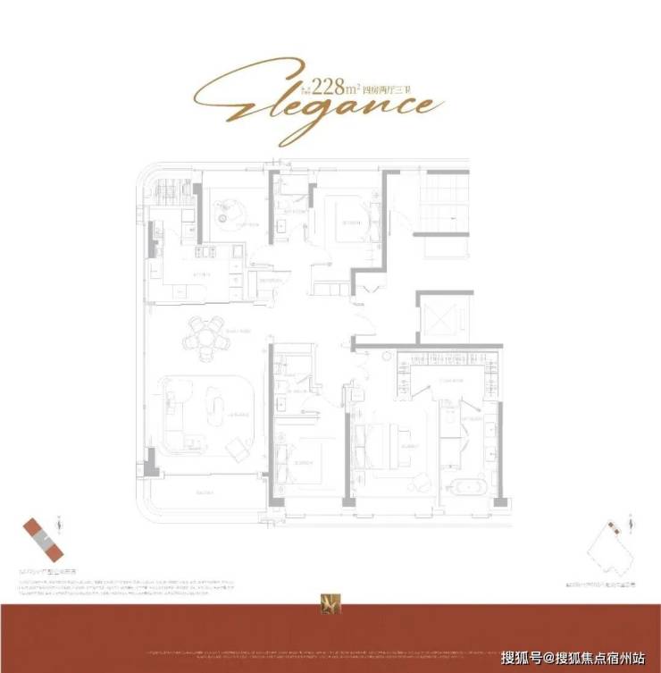 主力户型约228㎡4房两厅三卫,面宽达5.6米,配备270°环幕落地窗,客餐厅一体空间约53㎡,主卧套房面积约50㎡(含10㎡衣帽间与15㎡卫浴),完全满足高净值家庭“大空间、强功能”的居住需求。