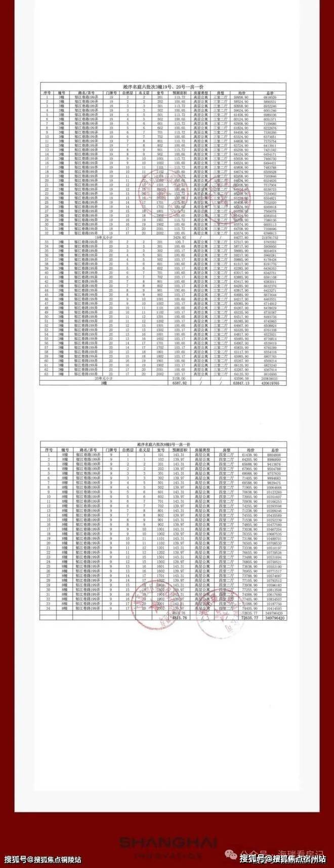 一房一价表: