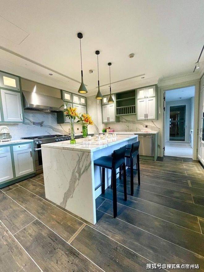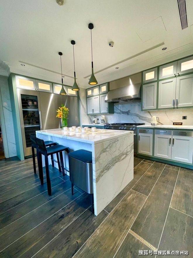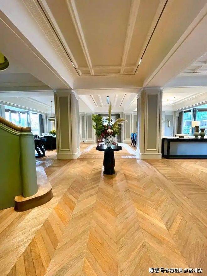 走进 363㎡的户型,空间的开阔感扑面而来 。一踏入屋内,首先映入眼帘的便是宽敞明亮的客厅,约 8 米的超大面宽,搭配全景落地窗,让阳光毫无保留地倾泻而入 ,整个空间显得格外通透明亮。在这里,您可以与家人围坐在一起,享受温馨的家庭时光;也可以邀请朋友前来聚会,宽敞的空间足以容纳欢声笑语 。客厅连接着景观阳台,站在阳台上,浦江两岸的壮丽景色尽收眼底,让您仿佛置身于一幅美丽的画卷之中 。餐厅与客厅一体化设计,空间连贯流畅,方便家人用餐和交流 。餐厅旁的西式厨房,配备了顶级的嘉格纳厨电,无论是烹饪精致的西餐,还是制作丰盛的中餐,都能让您尽情展现厨艺 。中厨采用封闭式设计,有效地隔绝了油烟,同时也保证了厨房的整洁和卫生 。