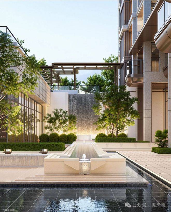 立体园林以多层次水系与艺术雕塑,营造“城心绿洲”的静谧氛围;
