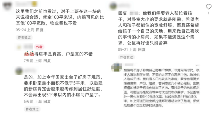 另外在社交媒体上,众多业主纷纷为项目低容积率、户型得房率、景观河道等点赞。