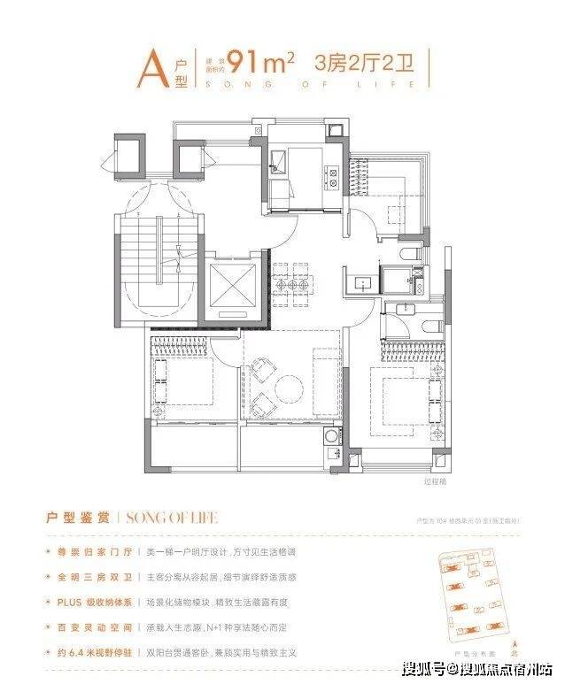 以“零过道、零浪费”的极致空间利用率,重新定义功能与舒适兼得的品质小三房。270°转角飘窗引景入室,约6.4米双阳台实现家政与观景分离,每一寸面积皆为其所用,丝毫不显局促。