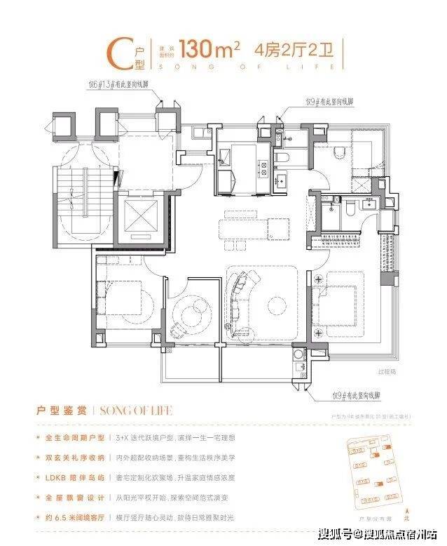 3+X 灵动空间可根据需求改造成书房、儿童游乐区或老人房,满足二胎家庭、三代同堂的居住需求;LDKB无界通厅与X空间打通后,可形成约6.5米巨幕横厅,朋友聚会、家庭互动都有足够空间;主卧以酒店式套房标准打造,独立衣帽间、南向全明主卫、270°转角飘窗,奢享感拉满;全屋6大采光飘窗,让每个房间都明亮通透。