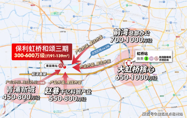 由此可见, 示范区线沿线连接着华为、前湾、大虹桥、临空、中山公园、市中心、张江、华泾等一众超强产业区。保利虹桥和颂·西岸凭借地铁房的优势及价格红利,必将成为这些产业区人才置业的热门之选。
