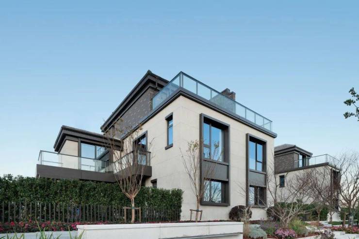 项目建筑外观呈新中式格调,与合院如同天作之合。整体建筑则采用坊、弄空间布局,延续上海地域文化,清幽的社区环境,契合诗意的生活体验。