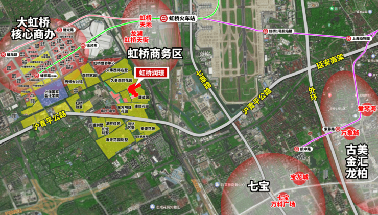 那虹桥润璟近水楼台,更凭借区域首屈一指的产品调性,成为高收入人群改善置业的优选!项目区位示意图