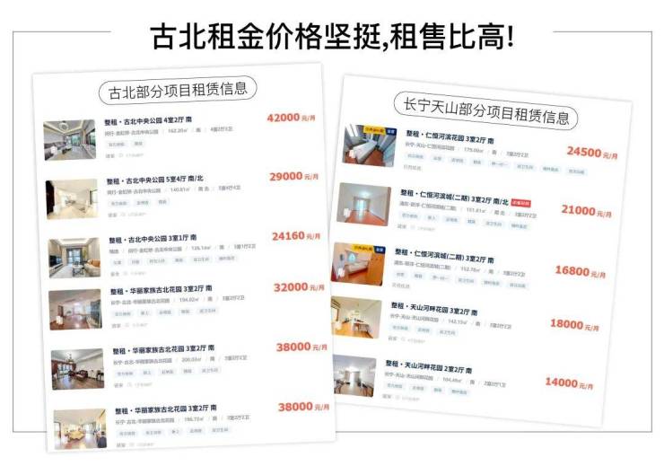古北租金一向坚挺,从数据看比长宁高端住区天山都要高。