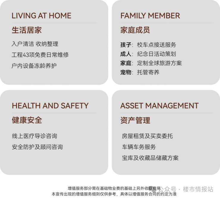 同时,古北99还为业主身定制了一系列增值服务,涵盖入户保洁、43项免费日常维修、社区冻龄、个人及企业安全顾问咨询、车辆车务服务、医疗健康咨询 、纪念日策划、私宴服务及资产托管等精英圈层生活的方方面面,尽显无微不至的服务体验!(增值服务部分需在基础物业费的基础上另外收取费用,具体以增值服务合同约定为准)